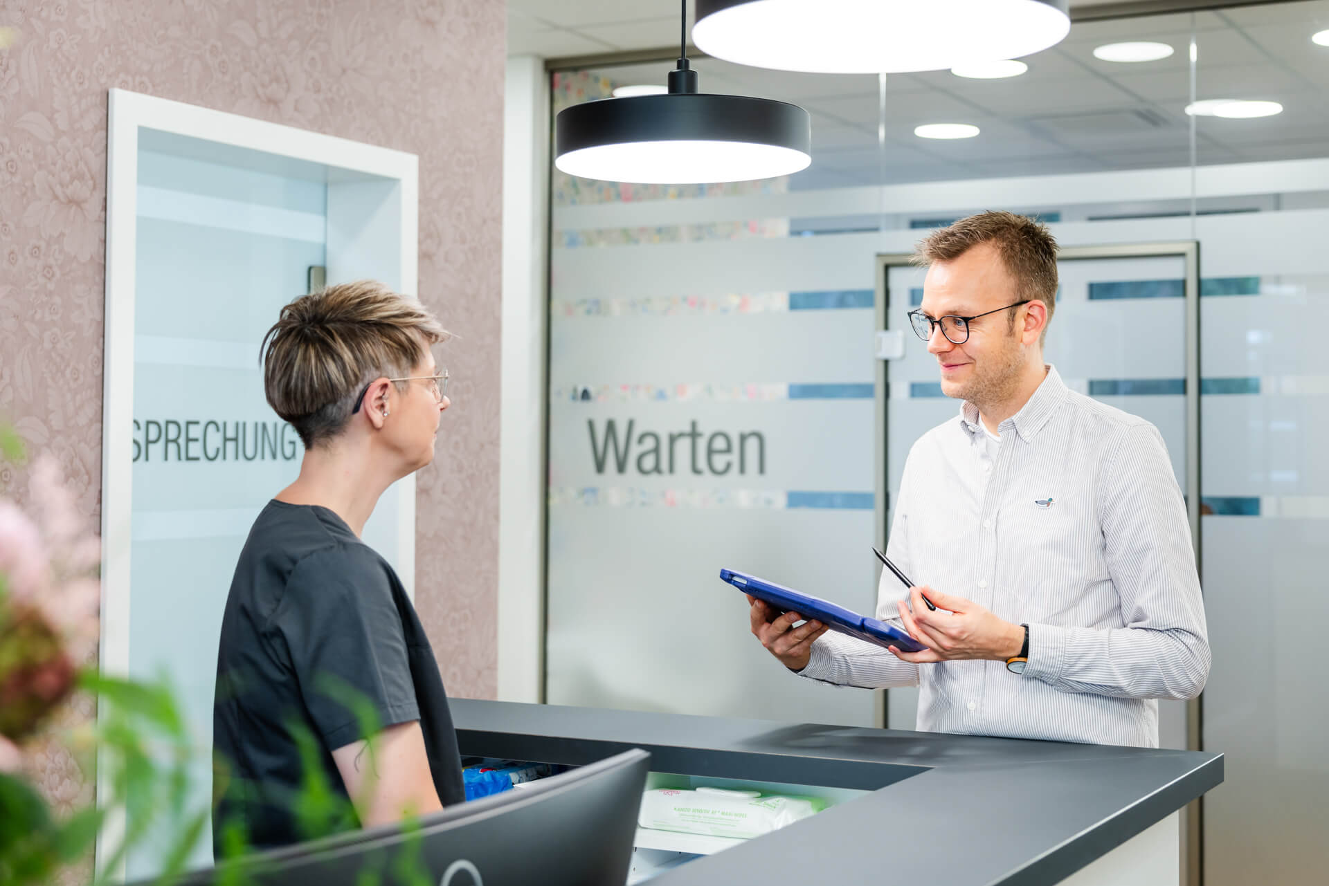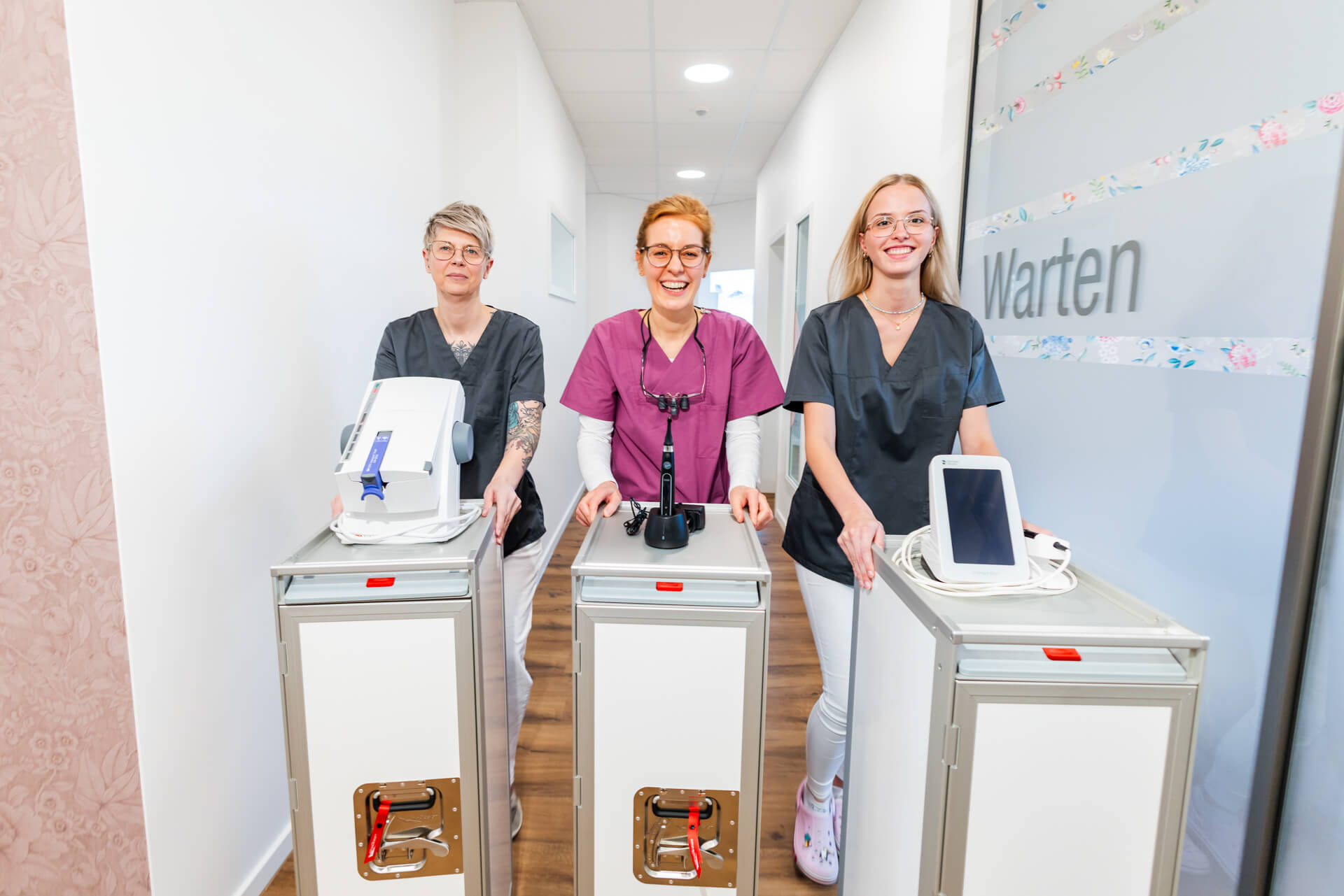 Wir haben für Sie eine Auswahl an Bildern aus unserer Praxis zusammengestellt. So erhalten Sie einen ersten Eindruck von unserem Team und unseren Räumlichkeiten. Neben der technisch hochwertigen Ausstattung ist es uns sehr wichtig, dass sich die Patienten bei uns wohlfühlen und wir sie in einer angenehmen Atmosphäre behandeln.